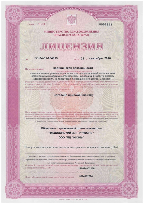 Номер лицензии: ЛО-24-01-004915. Проверен в реестре Росздравнадзора
