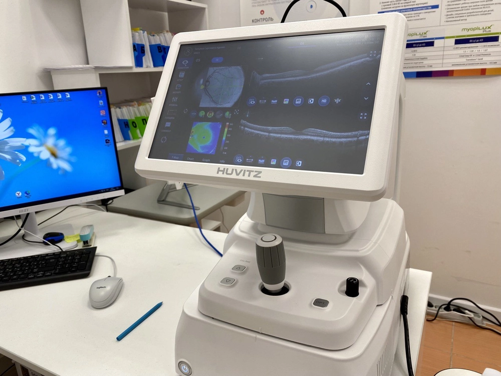 Специалисты клиники проводят различные виды офтальмологической диагностики: ОКТ сетчатки глаза, ОКТ зрительного нерва, визометрию, тонометрию, офтальмоскопию и др.