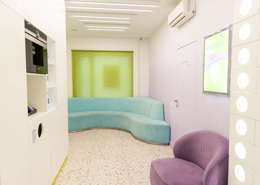 Предусмотрена раздельная зона ожидания для взрослых и детей, что позволяет каждому пациенту чувствовать себя комфортно и безопасно.