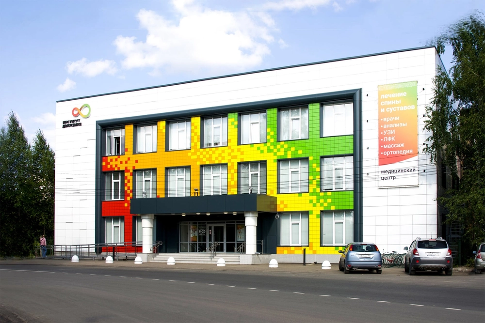 В медицинском центре Институт движения оказываются услуги в диагностике, лечении и профилактике заболеваний позвоночника и суставов. Высококвалифицированные врачи работают, в частности, с такими заболеваниями, как артроз, спондилоартроз, мигрень, протрузии, сколиоз, плоскостопие, мышечные спазмы и блоки. Пациентам предлагаются сеансы группового ЛФК и кинезиотерапии на тренажерах. Восстановительный эффект будет виден уже после 3 часов занятий в неделю. Кроме того, среди услуг клиники: физиотерапия, мануальная терапия, массаж, вытяжение позвоночника, рефлексотерапия, плазмотерапия, проводятся лечебные блокады.